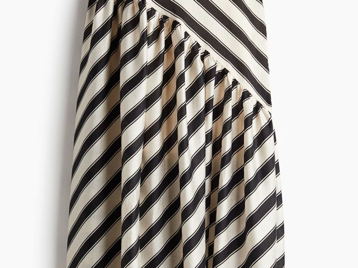 "Ein weicher, schräger Saum, der ein wenig Schienbein zeigt, kann bei kleinen Frauen das Bein wirklich verlängern", sagt Sheridan-Taylor. "Kombinieren Sie dazu Riemchensandalen und ein eingestecktes Oberteil, um die Taille zu betonen.