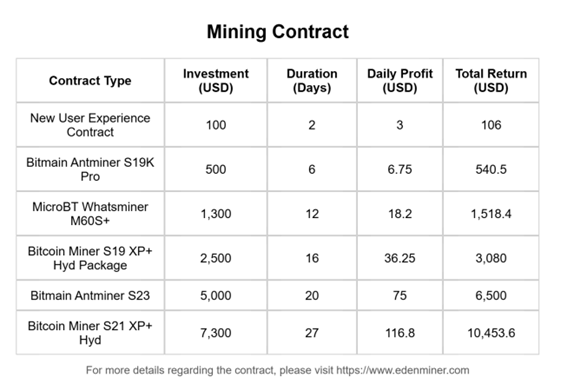 Durch eine Kombination aus Registrierungsboni, täglichen Check-Ins und Verträgen mit hohen Renditen ermöglicht Eden Miner nicht nur normalen Anlegern eine kostengünstige Teilnahme an der globalen Zuteilung von Rechenleistung, sondern bietet auch einen transparenten und effizienten Kanal zur Wertsteigerung von Vermögenswerten für vermögende Nutzer, die einen stabilen Cashflow anstreben. Angesichts des anhaltenden explosiven Wachstums des Kryptomarktes im Jahr 2025 ist die Entscheidung für das Cloud-Mining von Eden Miner zweifellos ein kluger Schritt, um diese Runde digitaler Wohlstandschancen zu nutzen.