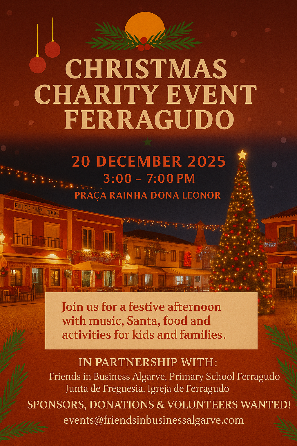 Organisiert von Friends in Business Algarve in Zusammenarbeit mit der Grundschule von Ferragudo, der Junta de Freguesia, der örtlichen Kirche und lokalen Unterstützern, wird die Veranstaltung Einwohner, Unternehmer und Familien zu einem Nachmittag voller Freude, Musik, Weihnachtsliedern und Gemeinschaftssinn zusammenbringen.