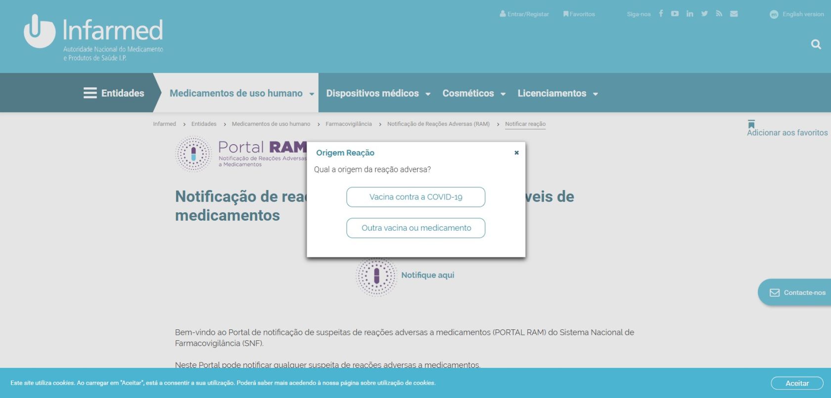 Sobald ein Arzneimittel auf dem Markt ist, hängt die Pharmakovigilanz weitgehend von den Meldungen über vermutete unerwünschte Arzneimittelwirkungen durch Angehörige der Gesundheitsberufe und Patienten ab. In Portugal werden diese Meldungen hauptsächlich online über das Portal RAM auf der Website(www.infarmed.pt) von INFARMED - Nationale Behörde für Arzneimittel und Gesundheitsprodukte, I.P. - eingereicht.