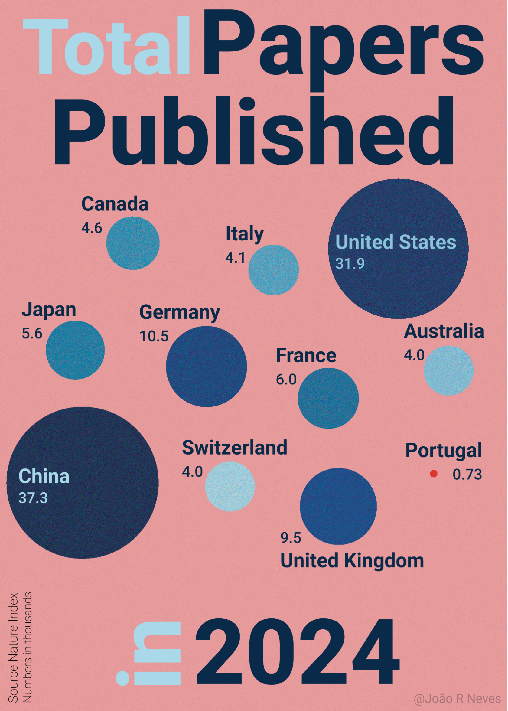 כ -3.4 מיליון מאמרים מתפרסמים מדי שנה. מדד הטבע 2024 מראה שארה"ב וסין שולטות בפרסומים, בעוד פורטוגל מדורגת במקום ה -29 במספרים מוחלטים. עם זאת, מדינות כמו פקיסטן, וייטנאם והודו מובילות במספר הניירות לנפש. הפרסום המדעי עולה ברחבי העולם. זה יכול להיות שיותר מדינות משקיעות במחקר, יותר מדענים עובדים על שאלות חשובות, או שיש סקרנות גדולה יותר. עם זאת, זה מציב אתגרים: כיצד נוכל להעריך מיליוני מאמרים ולסמוך על תוצאותיהם? ניירות שנסוגו הם מגמה מדאיגה. מפרסמים מסירים פרסומים עם בעיות חמורות, כגון התנהגות בלתי הולמת, פגמים מתודולוגיים או חששות אתיים
