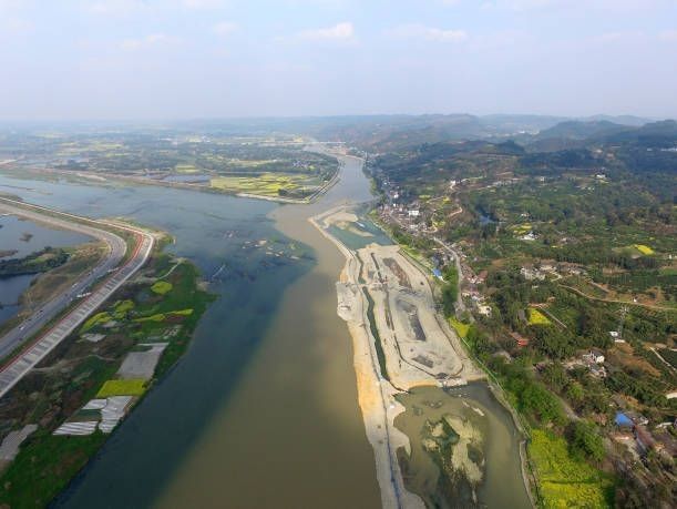 In the Min River where it flows by Jiangkou, underneath the water, bedrock chutes that hid many of the artifacts of Zhang Xianzhong’s treasure fleet were recovered.