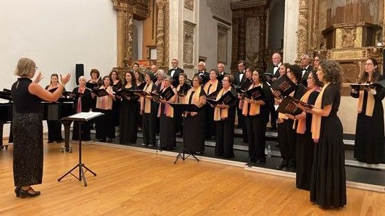 Here we all joined the steel sculpture of the Alentejo Choir for a photo opportunity before heading south and across the long bridge to Mourão castle.