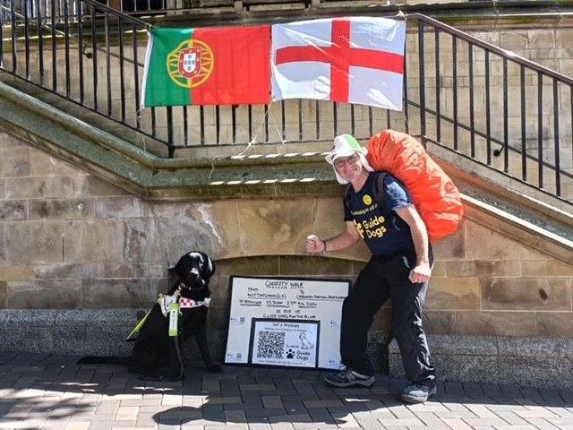 Nothing surprises me now with this man and when he told me he was going to walk from the UK to Tavira this year I was not shocked or surprised but could only admire the man and his determination. Not only will he succeed but undoubtedly he will earn much-needed money again to train guide dogs for the blind. I have talked with him about routes across the north of Spain along the coast or further inland including the pilgrim route Camino de Santiago. Once he arrives in Santiago de Compostela in northwest Spain Ian again has a choice. He can either stick to the coast or head further inland into the hills. Whichever way he chooses to go we have to admire this man and his determination to help people particularly those suffering with blindness.
