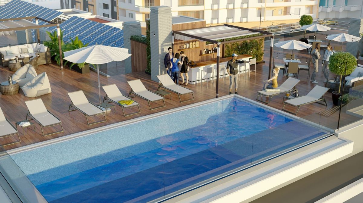 Attention to detail is evident throughout Lux Garden EVO, with a range of exclusive amenities designed to enhance daily life. A reception lobby with a lounge, a coworking area, a co-living space, and a heated saltwater pool are among the development’s key features. Residents can also enjoy an outdoor amphitheater, indoor gym, sauna and sensory showers, and a dedicated play area for children — all wrapped in an atmosphere of comfort and well-being.