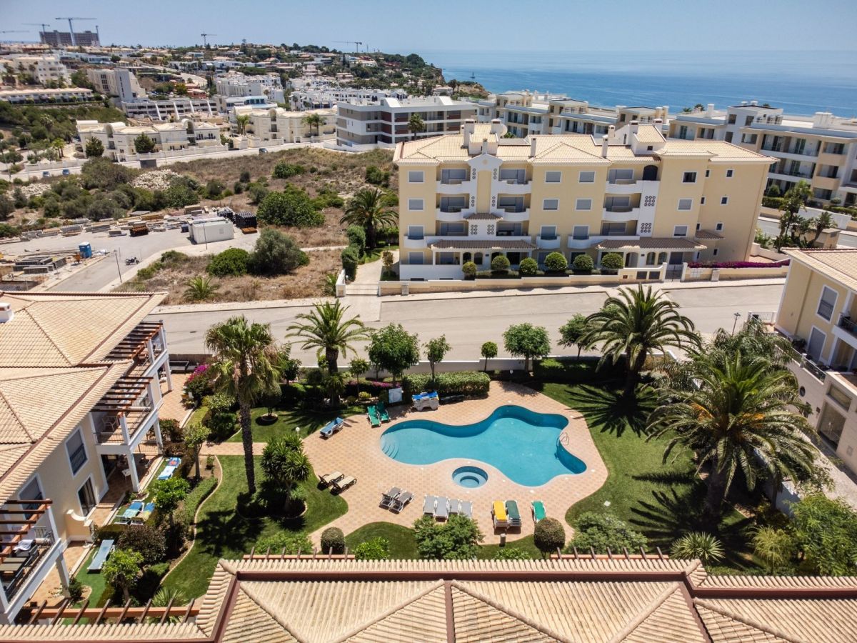 Ingången till denna lägenhet på första våningen leder in i det stora vardagsrummet / matsalen med dubbelglasade altandörrar som vetter mot den rymliga terrassen med utsikt över trädgården och poolen. Detta är den perfekta platsen att njuta av Algarvias solsken och Al Fresco-middagar.